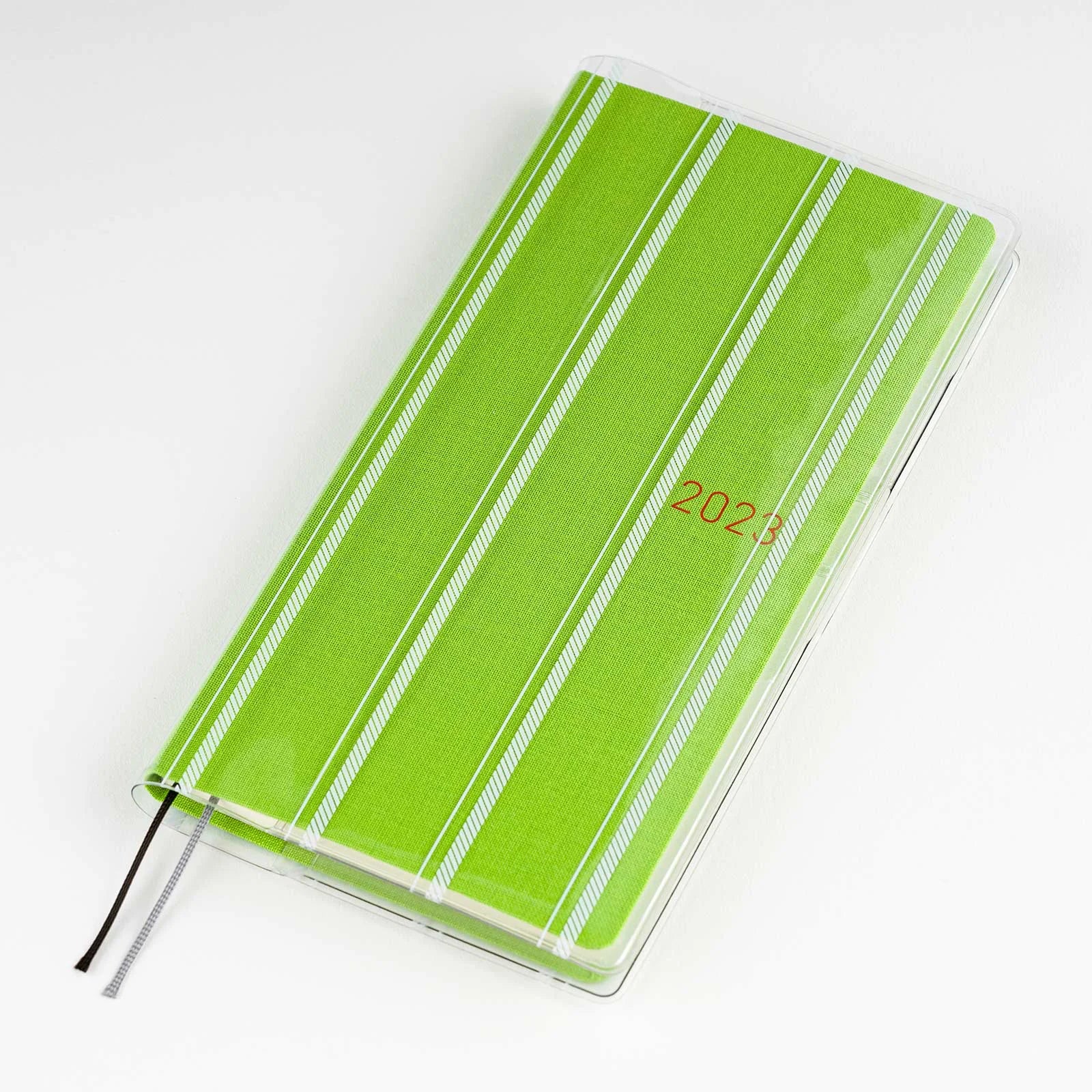 Cover on Cover is an optional, extra covering that fits select Hobonichi Techo covers to protect them from wear and tear. (Not for use directly on book.) The white stripes has a fresh feeling to it and is perfect for anyone looking to accent their simple techo cover by just a bit.